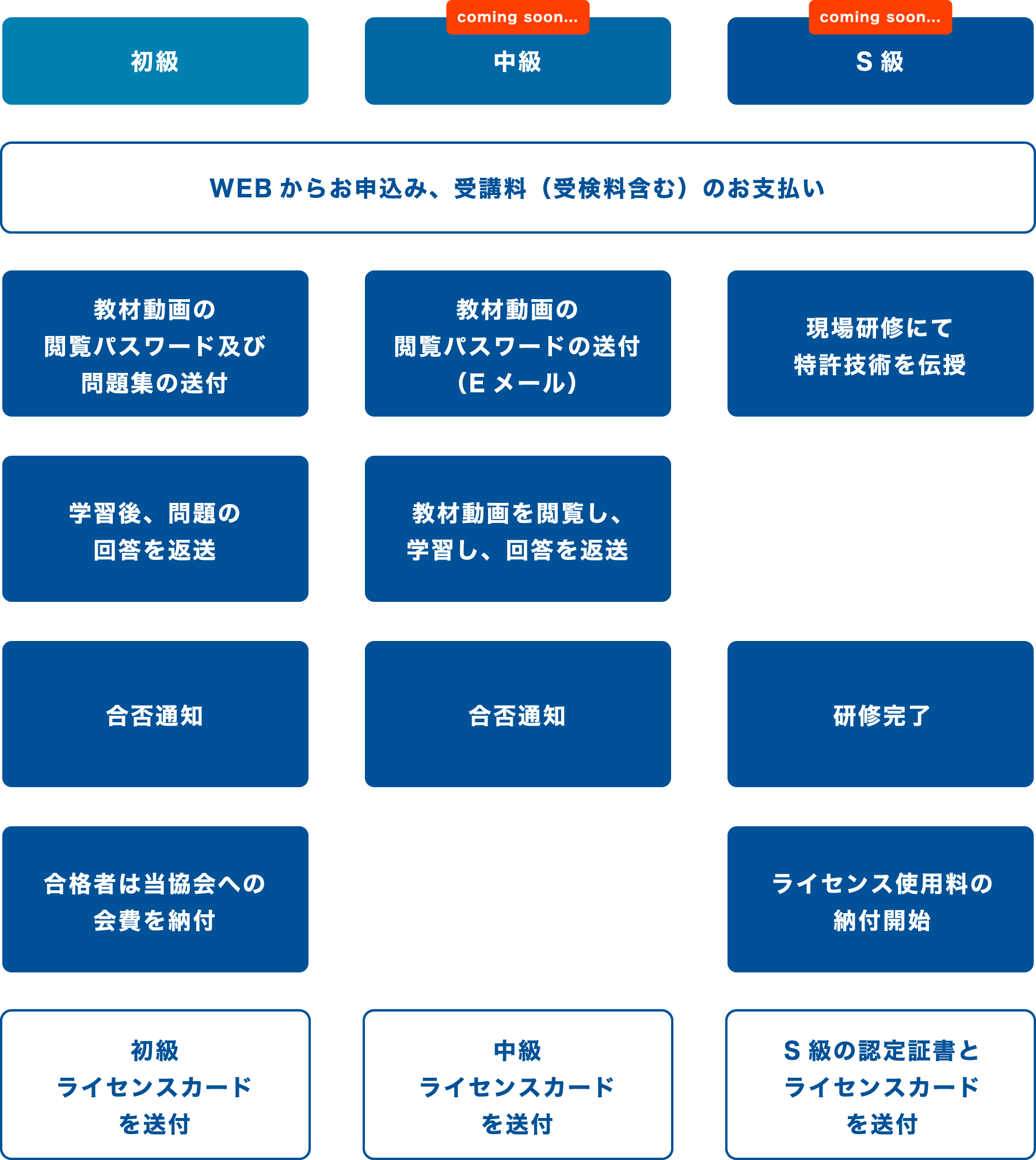 (上位資格を受講する場合、下位の級を全て取得している必要があります。)